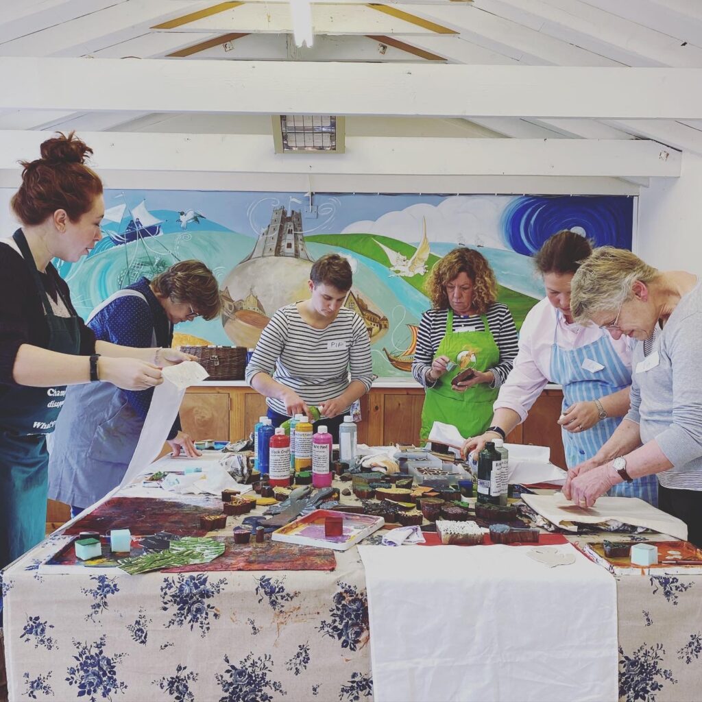 Fabric Printing Workshops are where fun and creativity meet! I host a selection of courses which are friendly to all abilities, beginner to experienced, young, old and in between. As well as Suffolk you’ll often found me popping up with workshops around the UK too.
